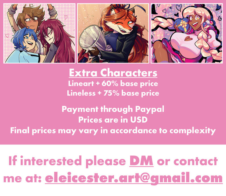 Prices listed here are for Private commissions and are not to be used for commercial use.The artist keeps ownership to copyrights of the commission piece, and retains the rights to use the image with the client's permission.